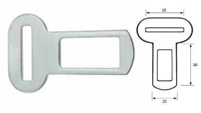 Metallschnalle zur Befestigung am Sicherheitsgurt von Fahrzeugen.